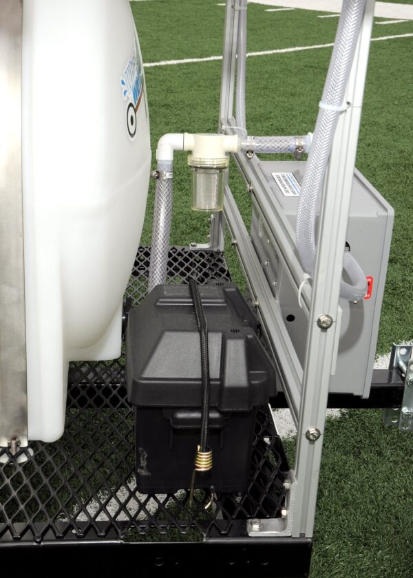 • (2) 3.0 GPM 12-volt pumps, one for each side, with 35-amp rechargeable battery and waterproof charger.